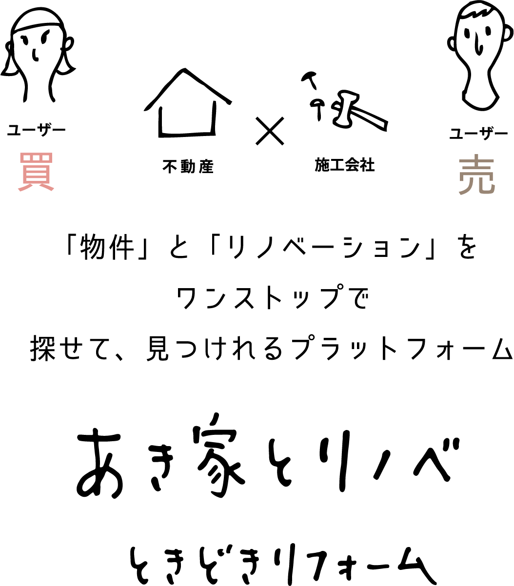 - ●「中古物件」を見つけて、リノベ・リフォームがワンストップで検討できる